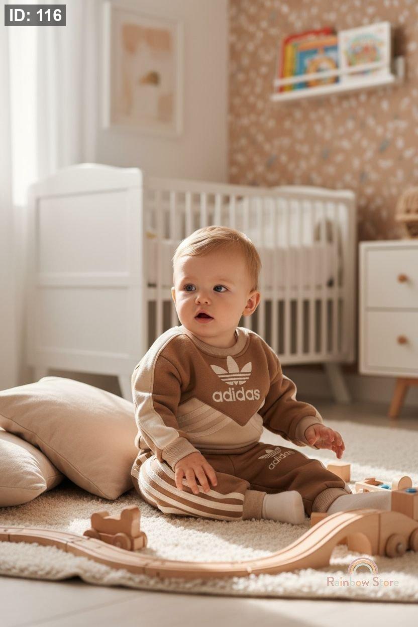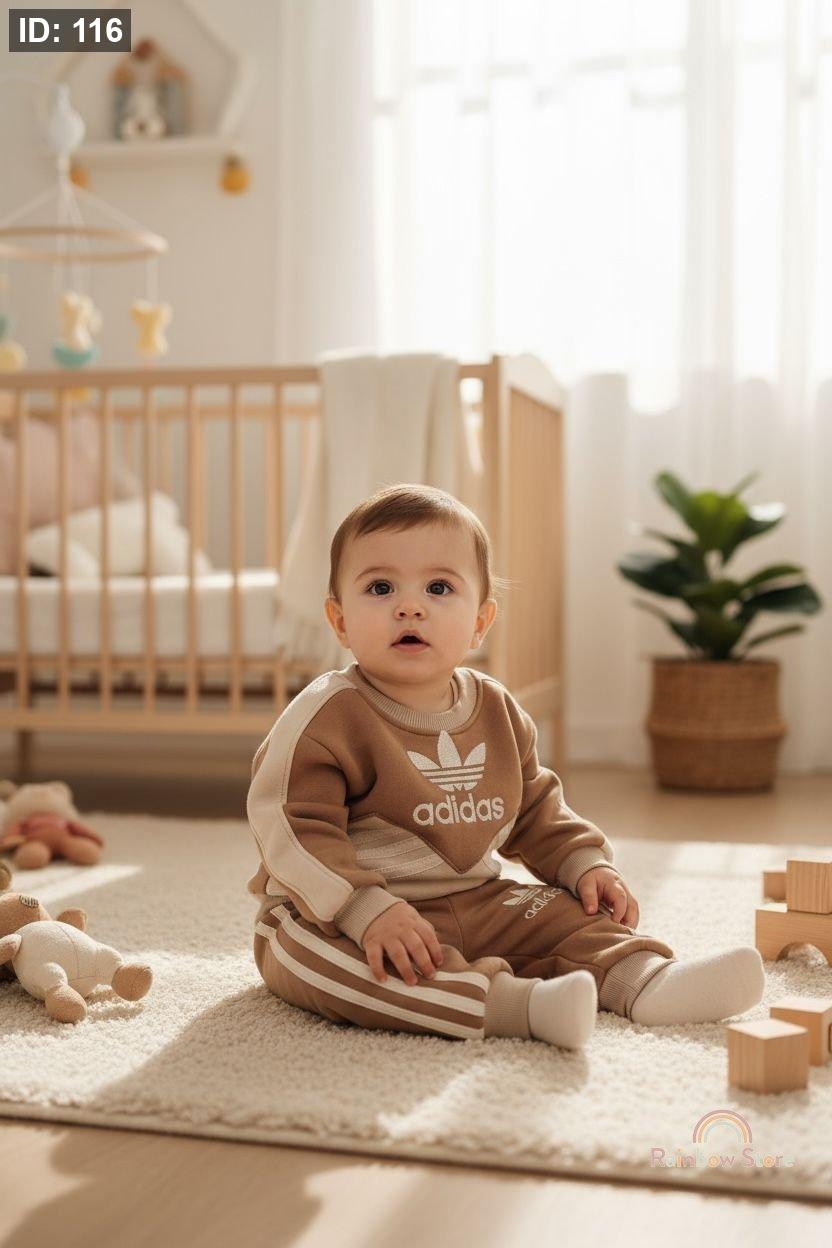طقم ولادي ناعم بلون بيج دافئ مع تصميم رياضي مرتب.