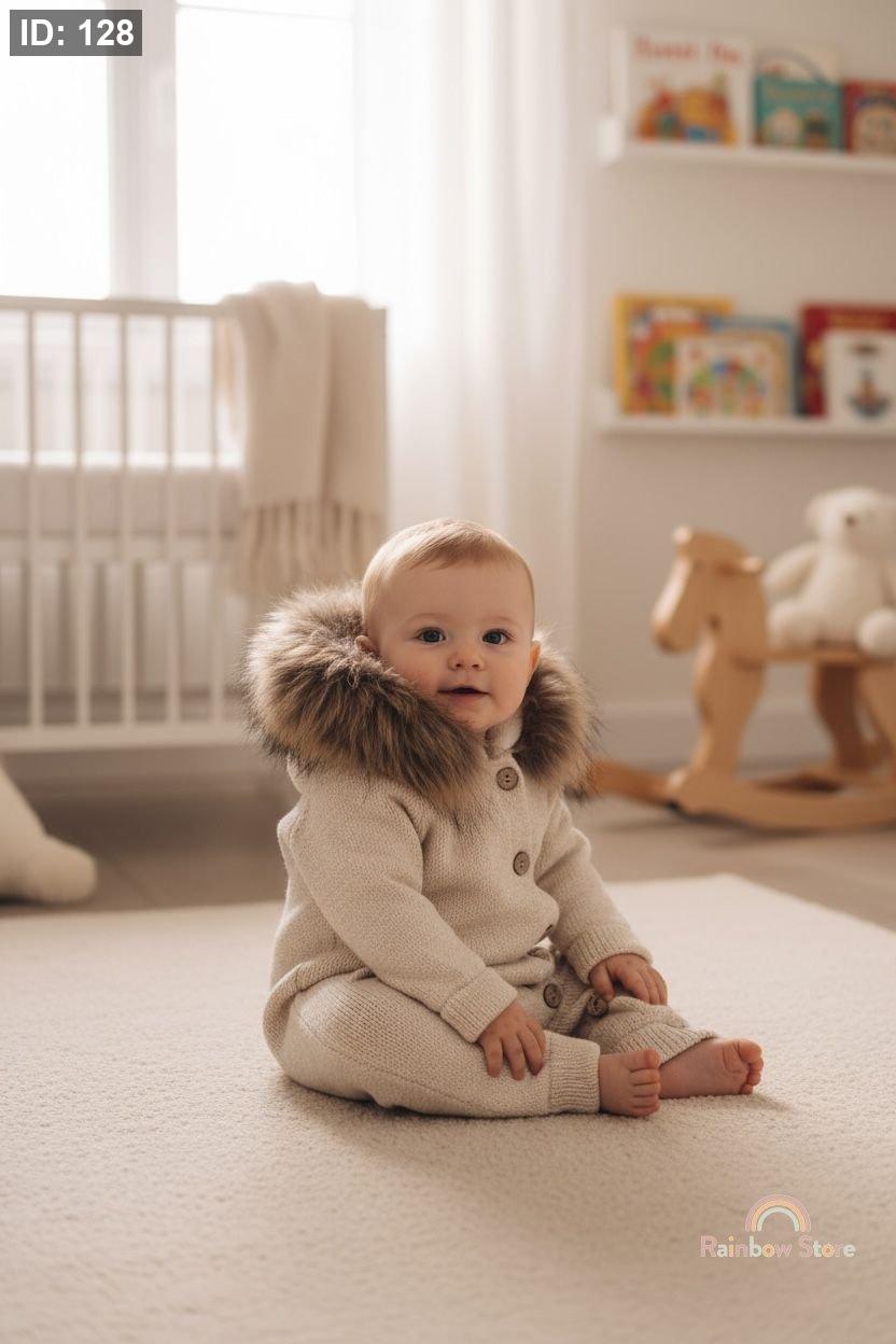 طقم شتوي أنيق بلون أوف وايت هادئ، مصنوع من قماش ناعم يبقي طفلك دافئ براحة. مزين بفتحة فرو حول الرقبة تضيف لمسة دافئة وملكية. مناسب للصور الجميلة، الخروجات الشتوية، والمناسبات العائلية الهادئة. تصميم مريح يسمح بالحركة واللعب بكل سهولة ✨