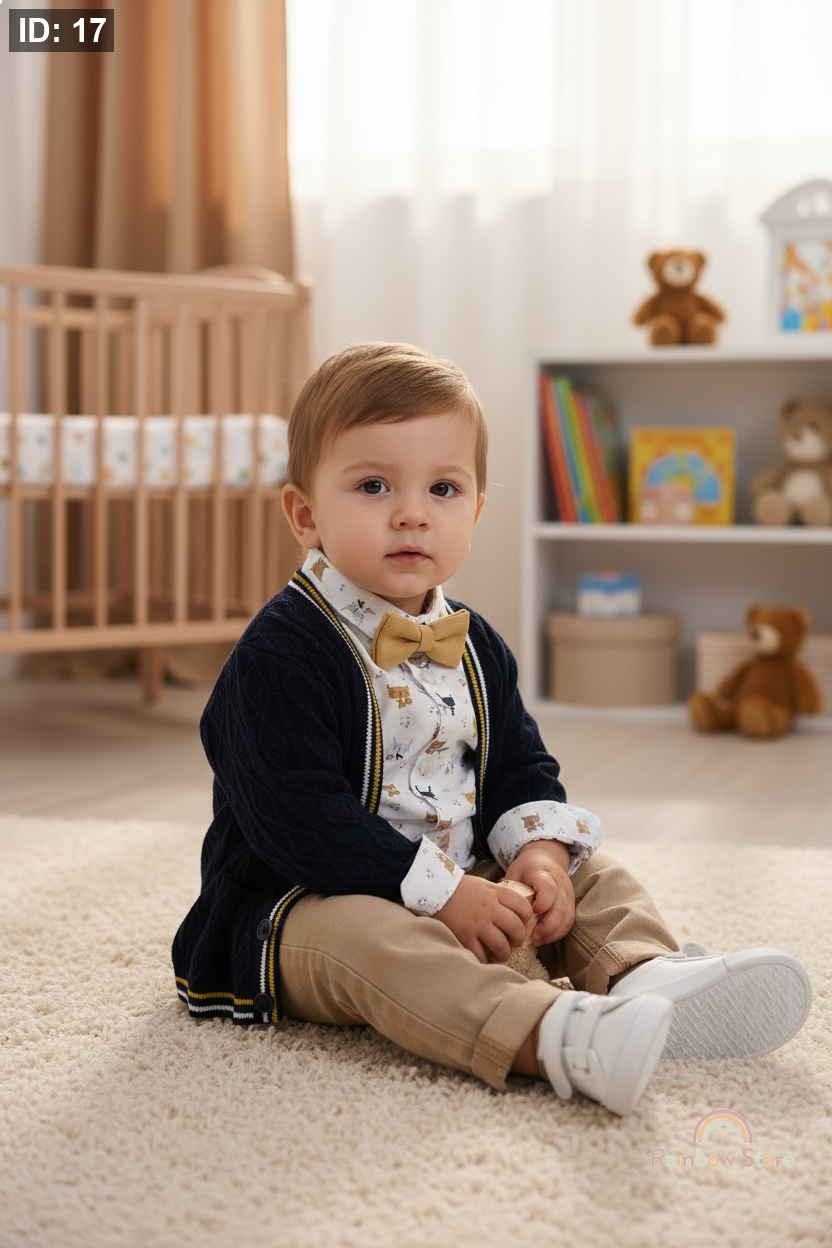 طقم كلاسيكي راقٍ يمنح طفلك مظهر الأمير الصغير بلمسة ناعمة ومريحة 💙