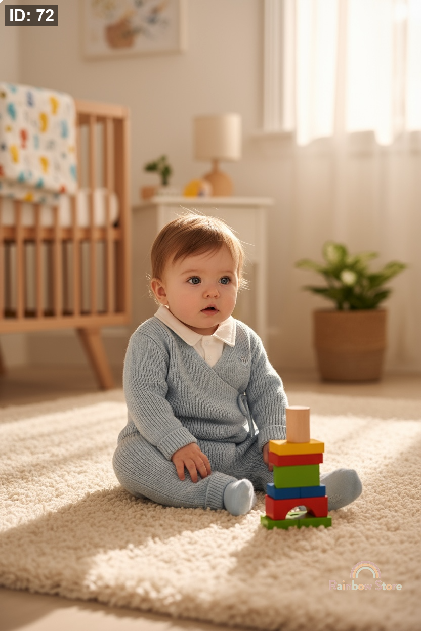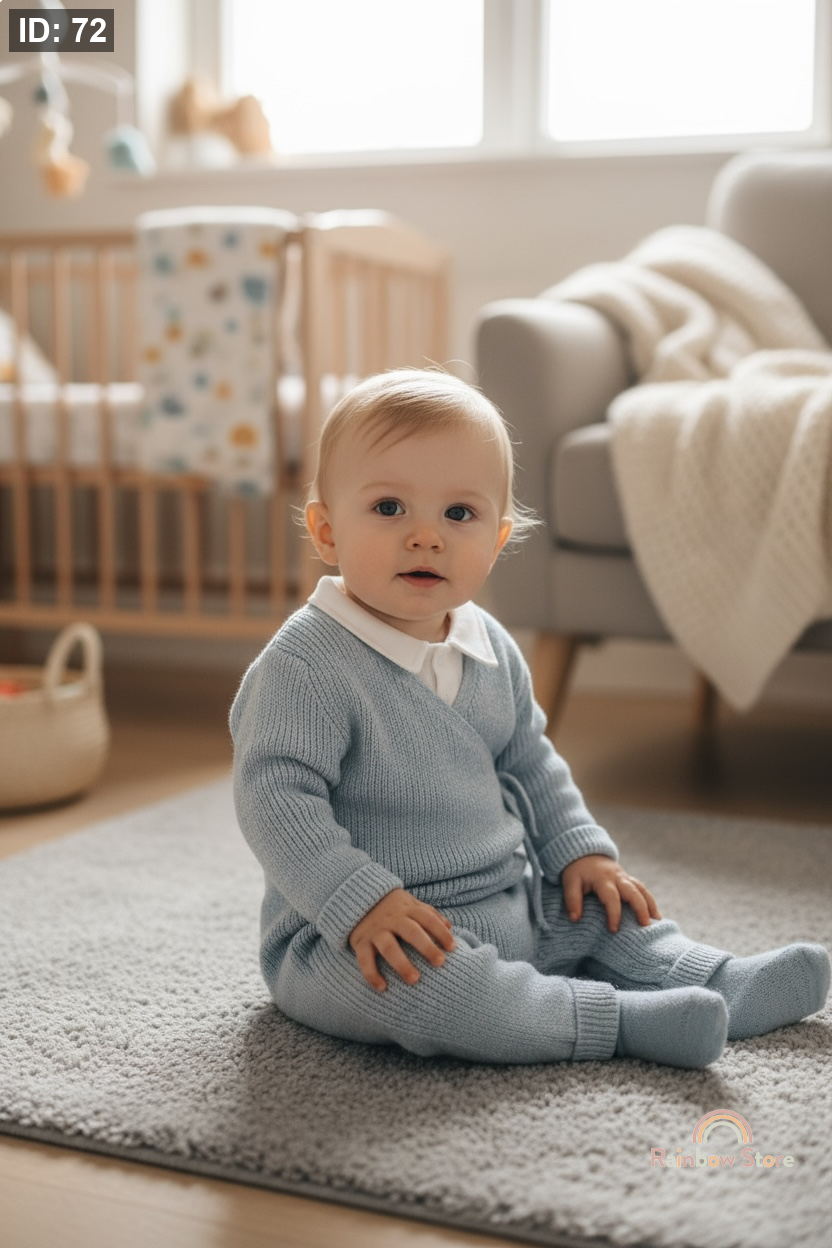 طقم ولادي من الصوف الناعم بتصميم سماوي أنيق.