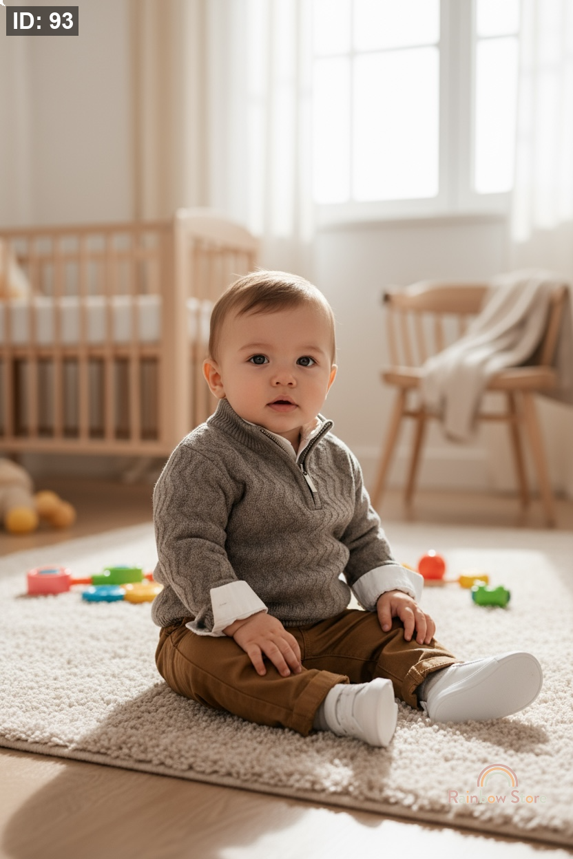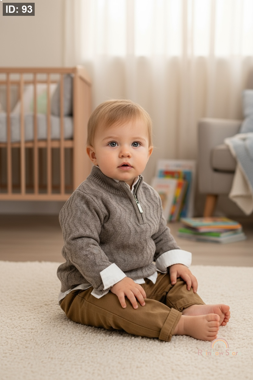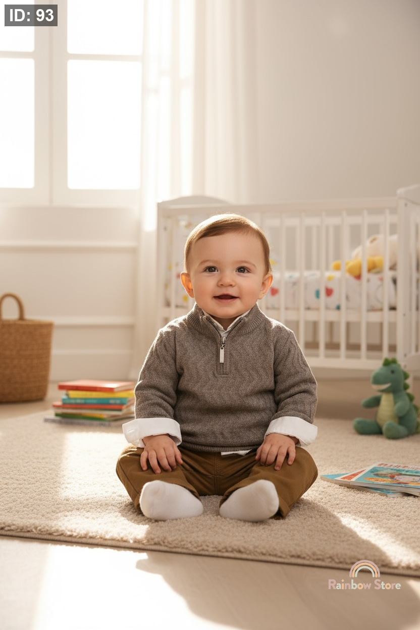 طقم أولادي دافئ من بلوفر ناعم بياقة نصف سحاب مع قميص أبيض وبنطال غامق لإطلالة أنيقة ومريحة في كل يوم.